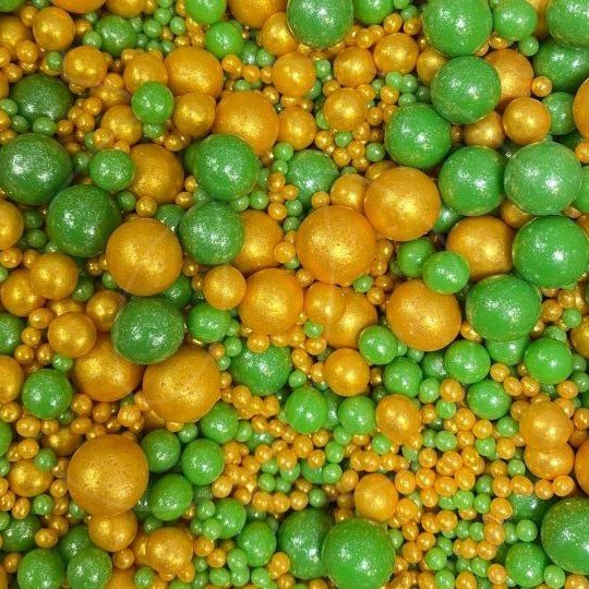 Доставка Посыпка кондитерская из дутого риса жемчуг "Зелёно-золотой микс" 50 г из магазина в вашем городе: