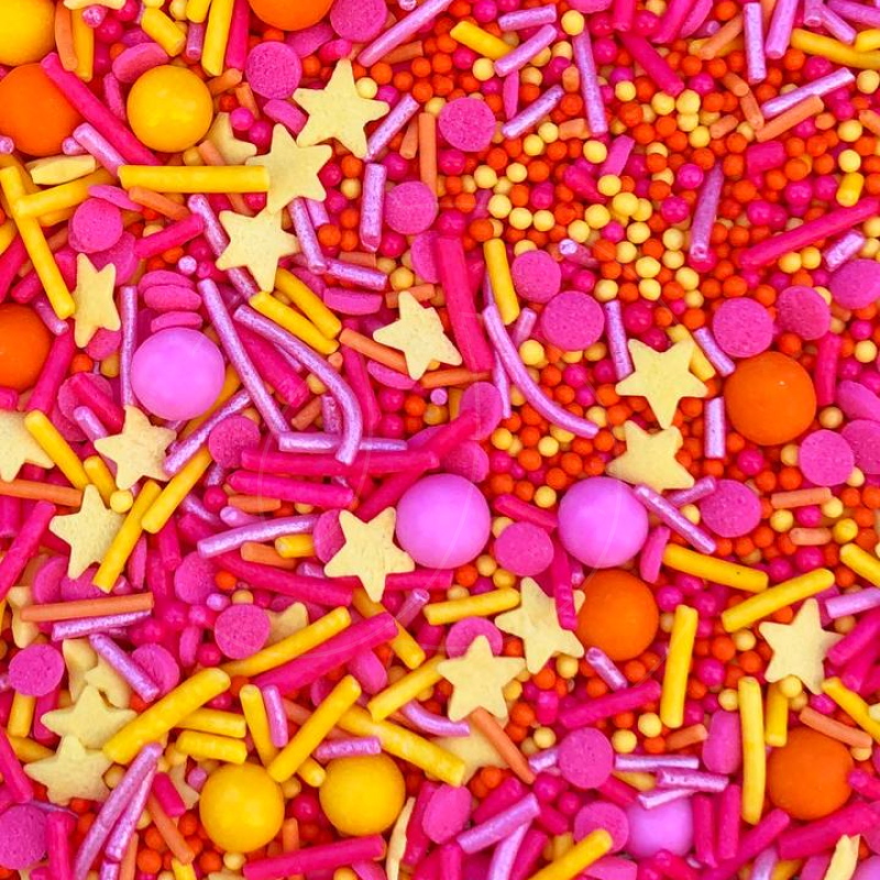 Такая яркая и красочная посыпка с элементами самых разных форм и цветов — будто кто-то взорвал хлопушку с праздничным весельем!