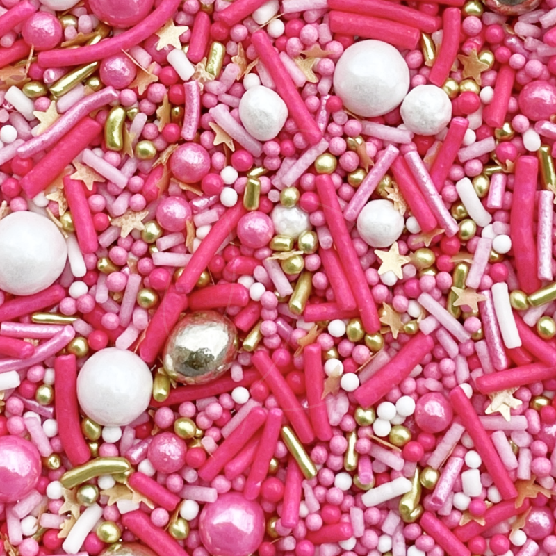 Если бы Барби была посыпкой, то только такой! Всевозможные оттенки розового, отполированные сахарные жемчужины, золотые звездочки и хрустящие шарики с шоколадом — уверены, вы уже влюблены в эту посыпку.