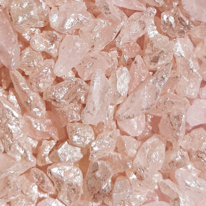 Розовые сахарные кристаллики с жемчужно-серебряным блеском.