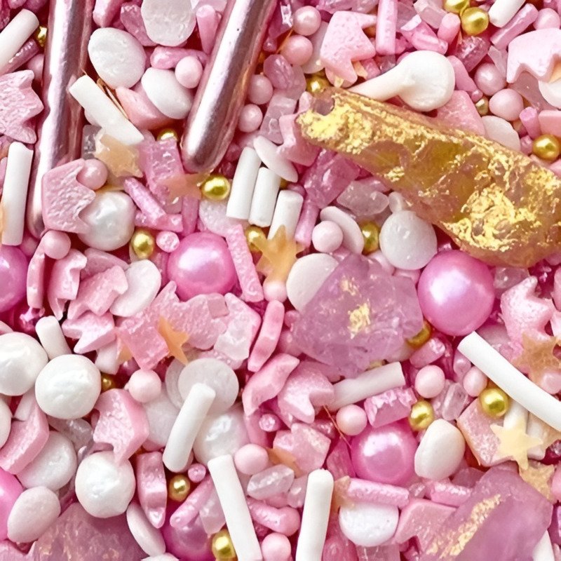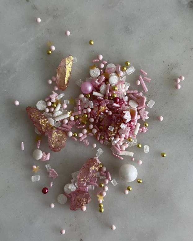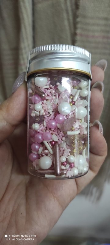 очень красивая посыпка. Разнообразие посыпок в нежных бело-розовых тонах. Очень понравились кристаллы, напоминают настоящий камень.
