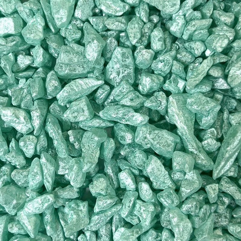 Бирюзовые сияющие сахарные кристаллики с блеском серебра.