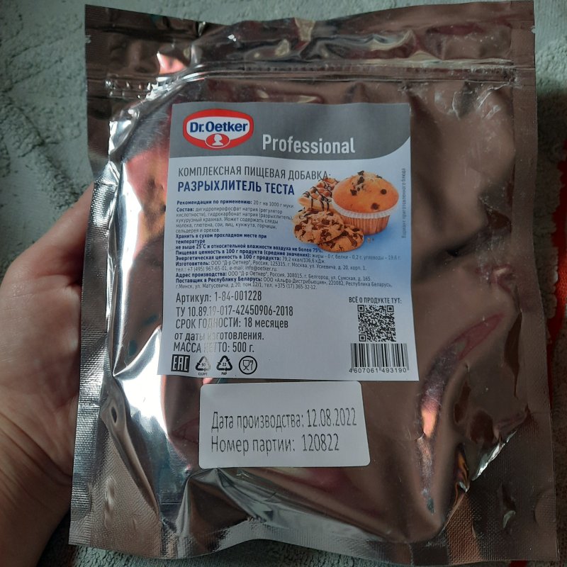Очень выгодный объем по сравнению с маленькими упаковками разрыхлителя. Нравится фирма dr.Oetker, при покупке в качестве не сомневалась. В выпечке не чувствуется, бисквиты воздушные, с задачей справляется отлично.