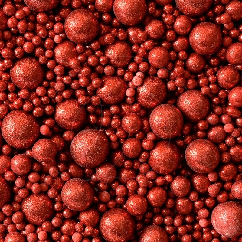 Жемчужная посыпка покрыта ярким пищевым блеском красного цвета.