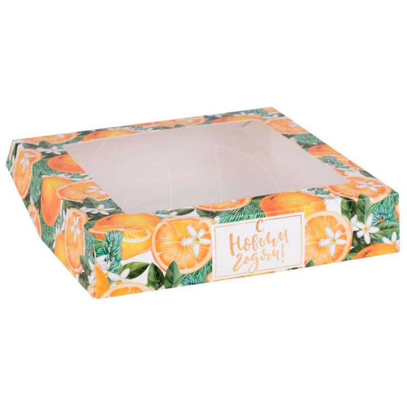 Доставка Коробка для сладостей с окном "Мандарины" 20х20х4 см из магазина в вашем городе: