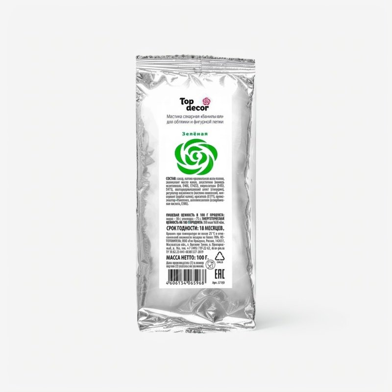 Доставка Мастика кондитерская ванильная Top Decor "Зелёная" 100 г из магазина в вашем городе: