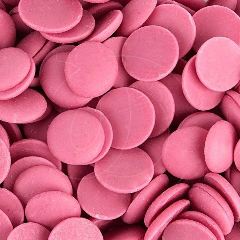 Готовьте различные десерты используя шоколадную глазурь в виде капель (каллет) ярко-розового цвета.