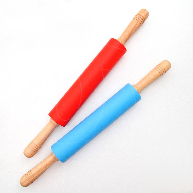 Скалка силиконовая с деревянными ручками 24,5 см