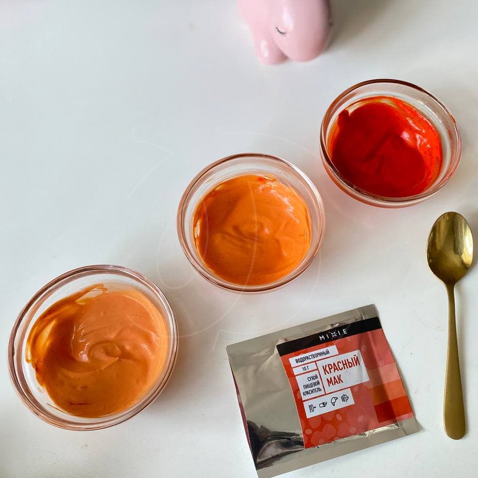 Благодаря порошковой текстуре краситель не размачивает основу продукта.