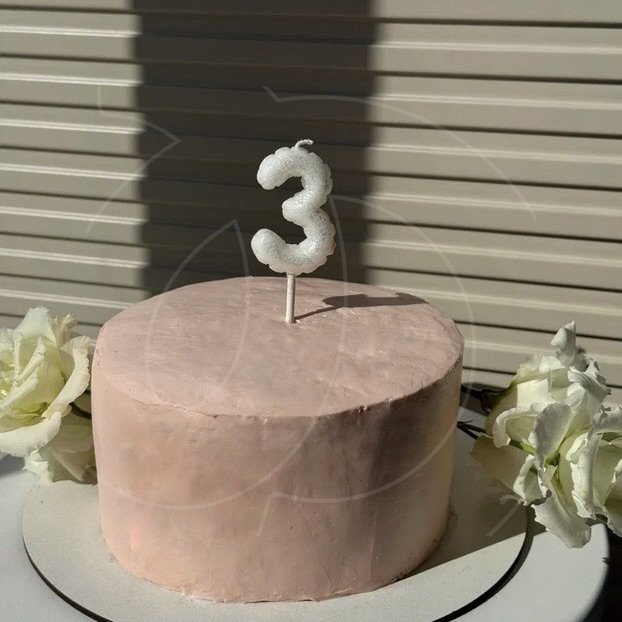 Свеча расположена на тонком основании, которое удобно крепить на праздничном торте и легко вынимать.