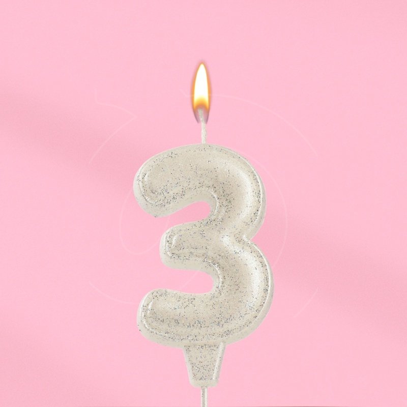 Свеча декоративная Цифра "3" Жемчужный перламутр с блёстками