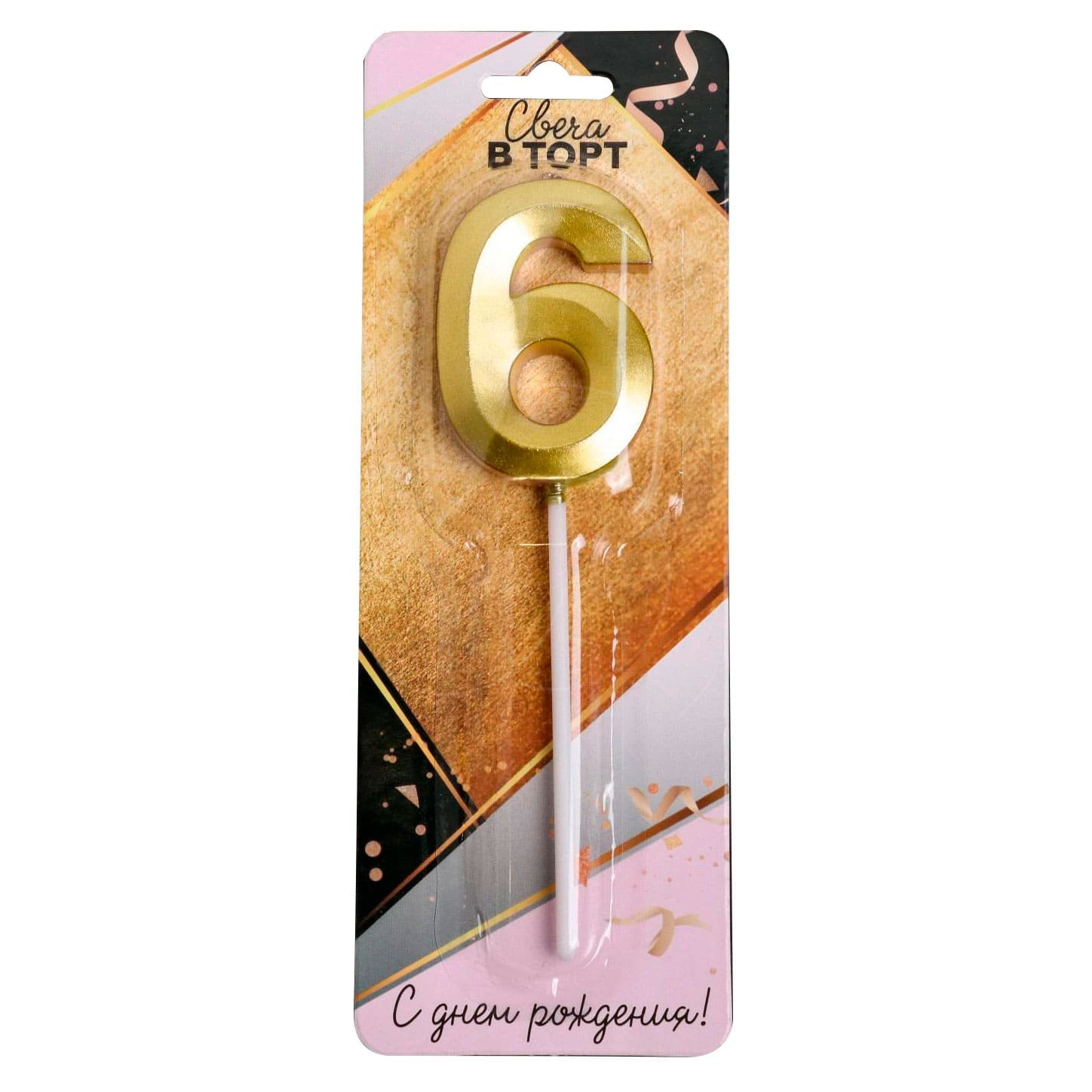 Доставка Свеча декоративная Цифра "6" Золотая из магазина в вашем городе: