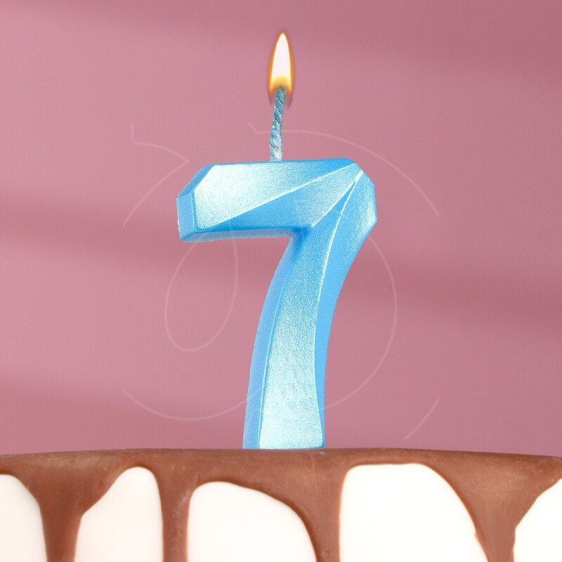 Доставка Свеча декоративная Цифра "7" Голубая блестящая из магазина в вашем городе: