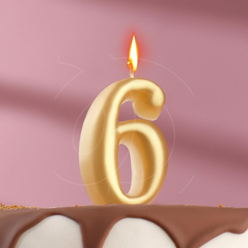 Доставка Свеча декоративная овальная "Цифра 6" Золотая из магазина в вашем городе: