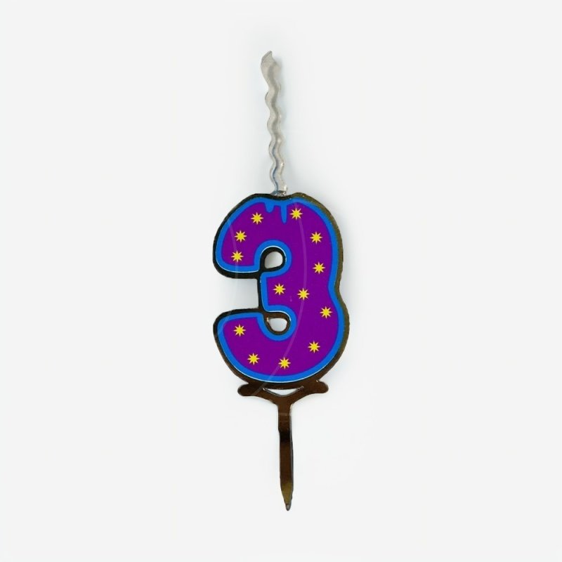 Свеча-топпер декоративная акриловая Цифра "3"