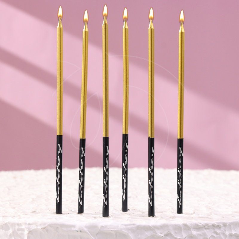 Доставка Свечи декоративные Золото с чёрным 14,5 см 6 шт из магазина в вашем городе: