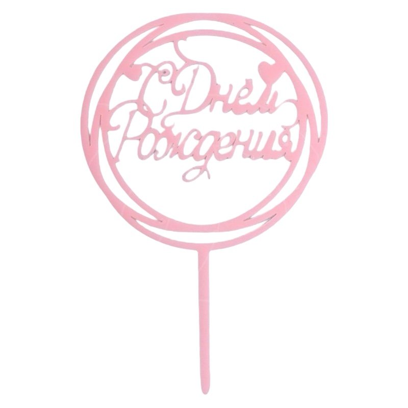 Доставка Топпер декоративный акриловый "С Днём Рождения. Рамка" Нежно-розовый из магазина в вашем городе: