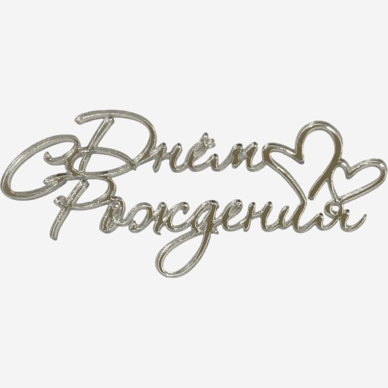 Доставка Топпер декоративный акриловый "С Днем рождения с сердечками" Серебро 11х5 см из магазина в вашем городе: