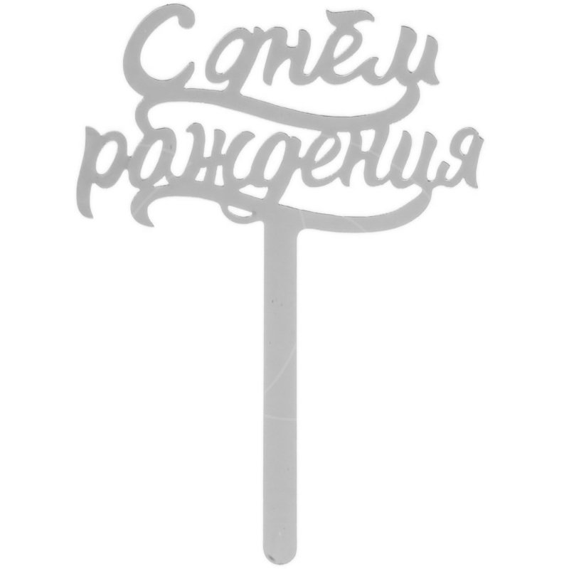 Доставка Топпер декоративный акриловый "С Днём Рождения" Серебряный из магазина в вашем городе: