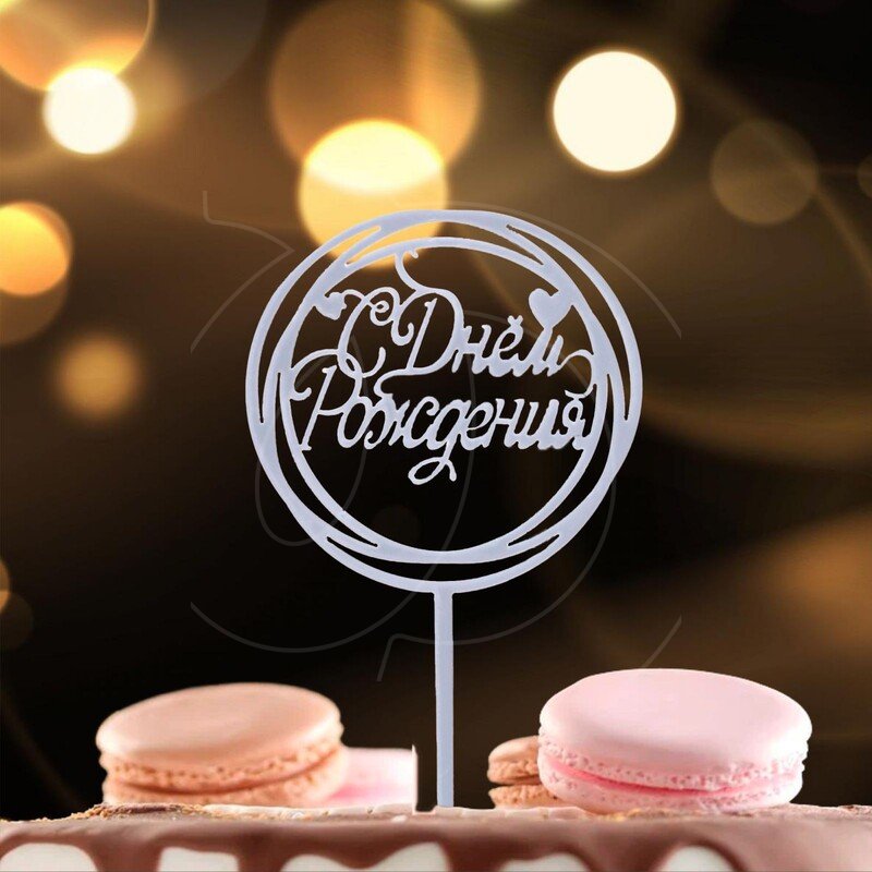 Доставка Топпер декоративный акриловый "С Днём Рождения" Серебро из магазина в вашем городе: