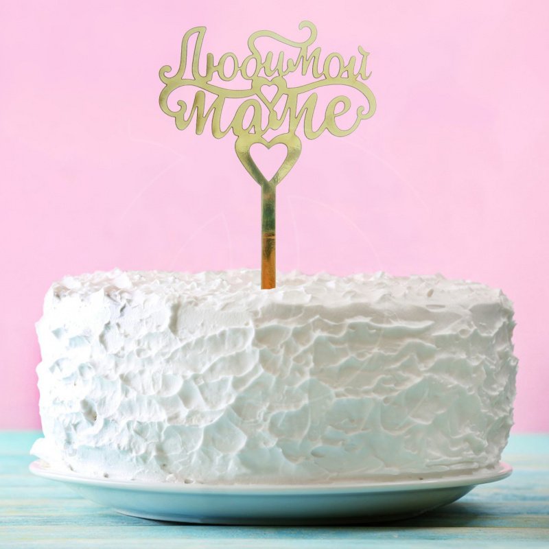 Доставка Топпер декоративный акриловый "Любимой маме" Золотой из магазина в вашем городе: