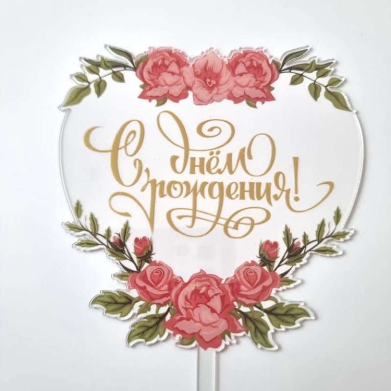 Доставка Топпер декоративный акриловый "С Днём Рождения. Цветы" из магазина в вашем городе: