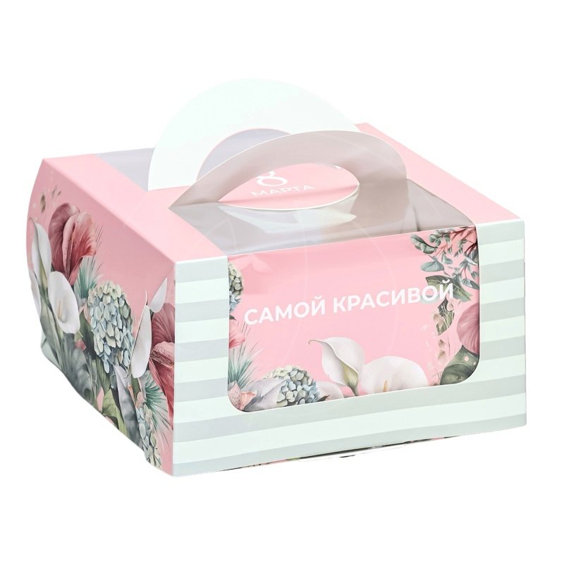 Доставка Коробка для бенто-торта "8 марта" 14х14х8 см из магазина в вашем городе: