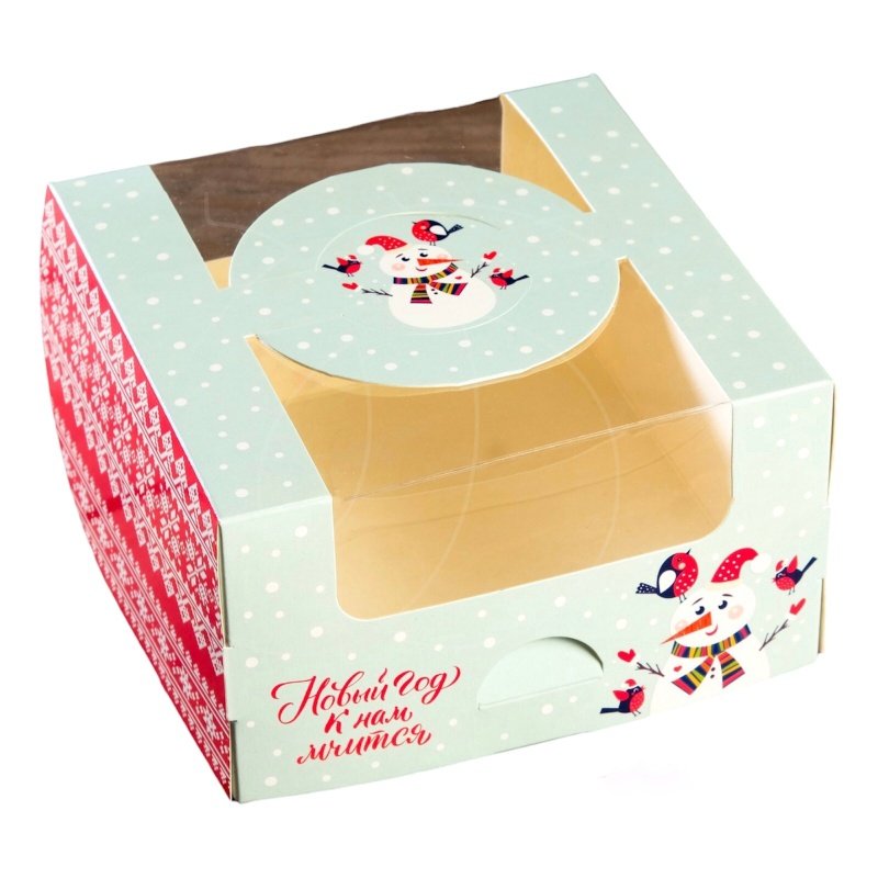 Доставка Коробка для бенто-торта с окном "Новый год к нам мчится" 14х14х8 см из магазина в вашем городе:
