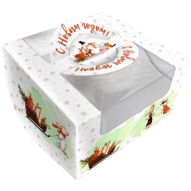 Доставка Коробка для бенто-торта с окном "Праздничное угощение" 14х14х8 см из магазина в вашем городе: