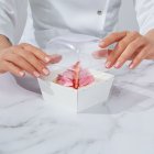 Поместите бенто-торт или другой десерт в упаковку и закройте крышку.