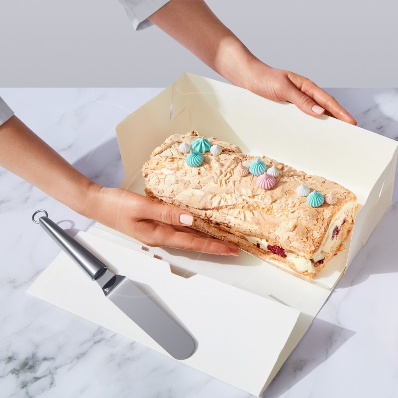 Используйте подарочную коробку для упаковки рулета или другого десерта.