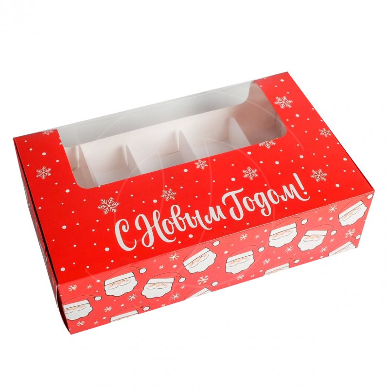 Коробка на 5 эклеров и эскимо с окном "С Новым Годом" 25,2х15х7 см