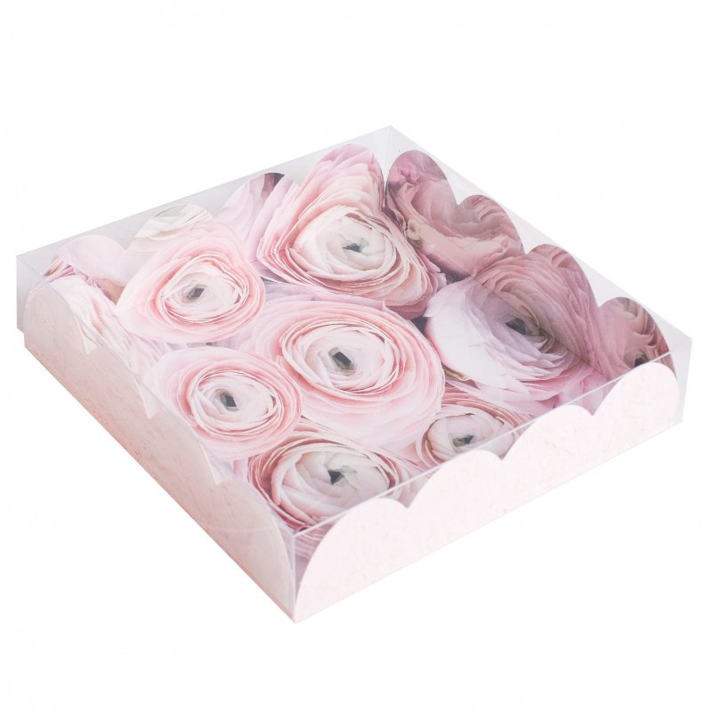 Коробка для сладостей с прозрачной крышкой "Пионы" 13х13х3 см