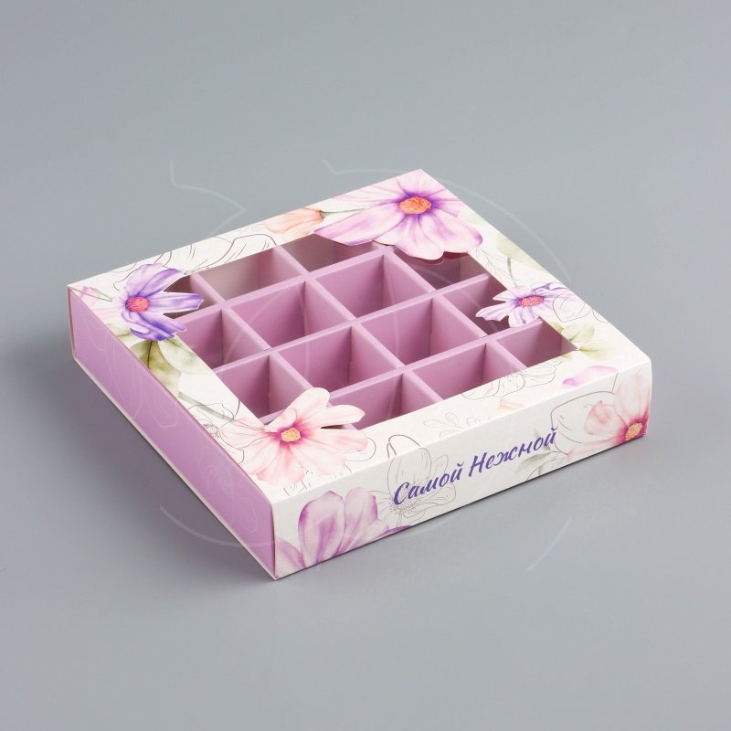 Коробка на 16 конфет с окном "Нежной" 17,7х17,7х3,8 см