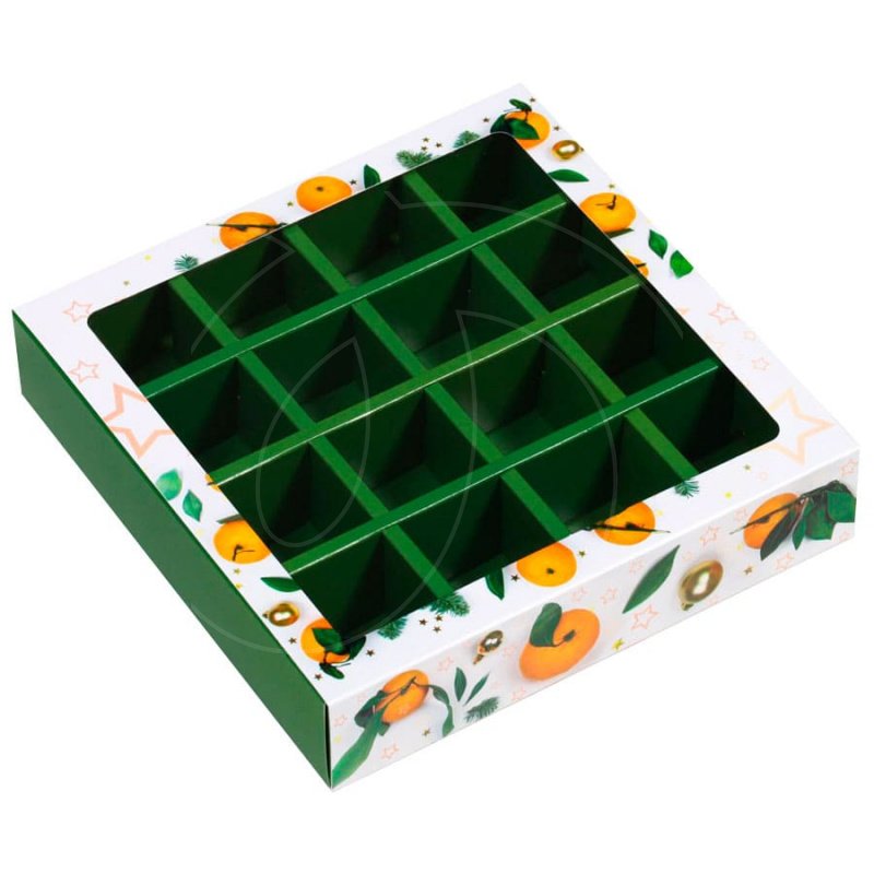 Доставка Коробка на 16 конфет с окном "Мандарины" 17,7х17,7х3,8 см из магазина в вашем городе: