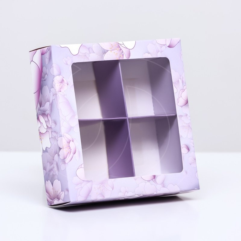 Доставка Коробка на 4 конфеты с окном "Фиалки" 12,6х12,6х3,5 см из магазина в вашем городе: