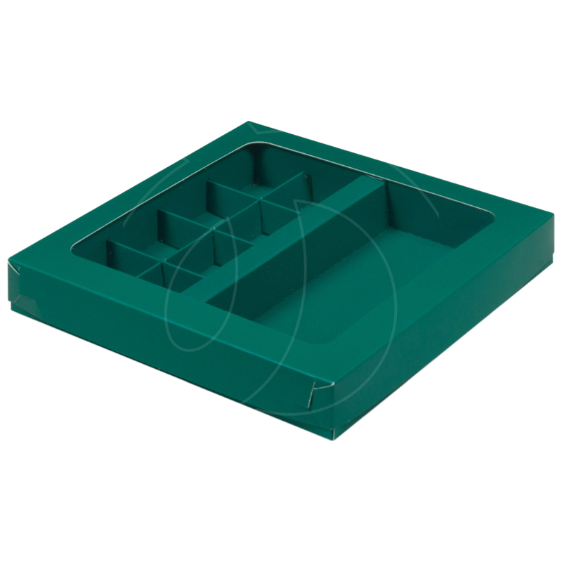 Доставка Коробка на 8 конфет и шоколадную плитку с прозрачной крышкой матовая зелёная из магазина в вашем городе: