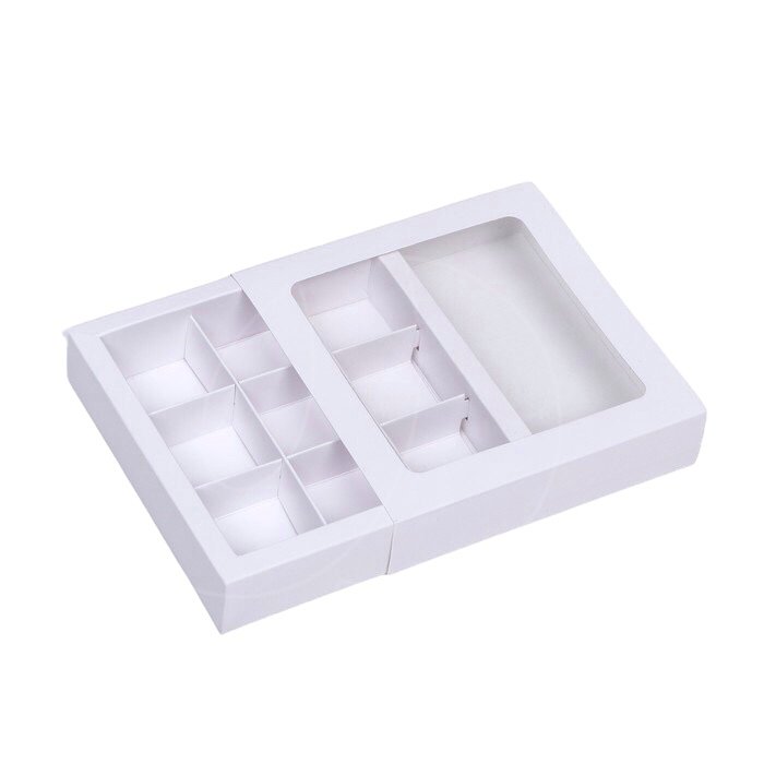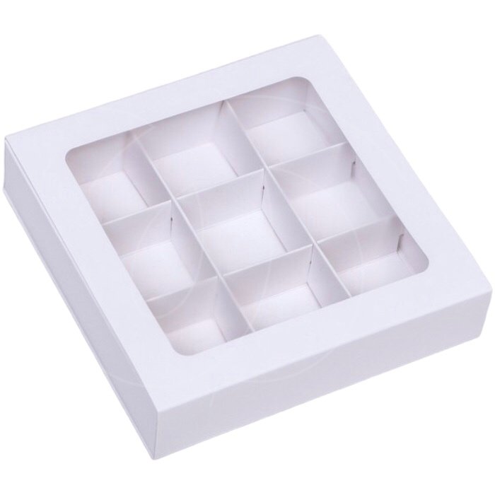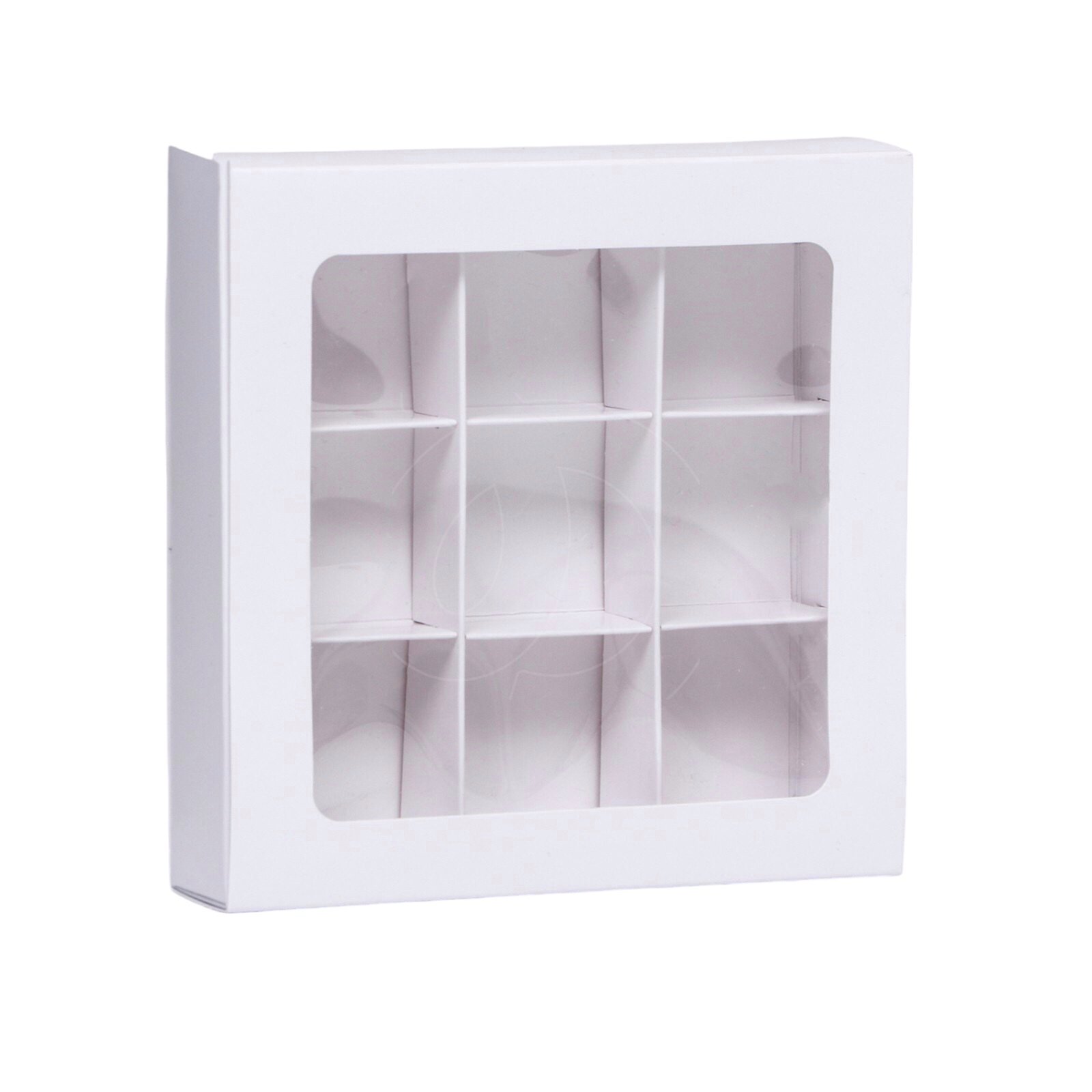 Доставка Коробка на 9 конфет раздвижная белая 14,7х14,7х3,4 см из магазина в вашем городе: