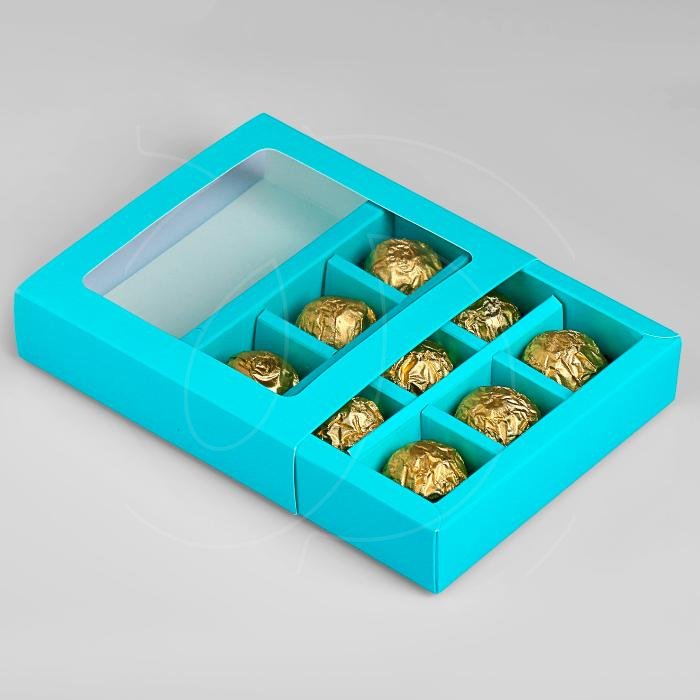 Доставка Коробка на 9 конфет раздвижная голубая 13,7х13,7х3,7 см из магазина в вашем городе: