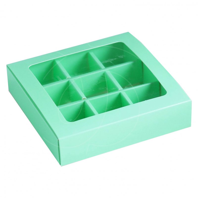 Доставка Коробка на 9 конфет раздвижная зелёная 13,7х13,7х3,9 см из магазина в вашем городе: