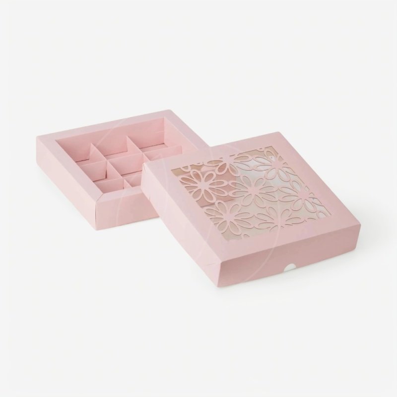 Коробка на 9 конфет с окном "Ромашка" розовая