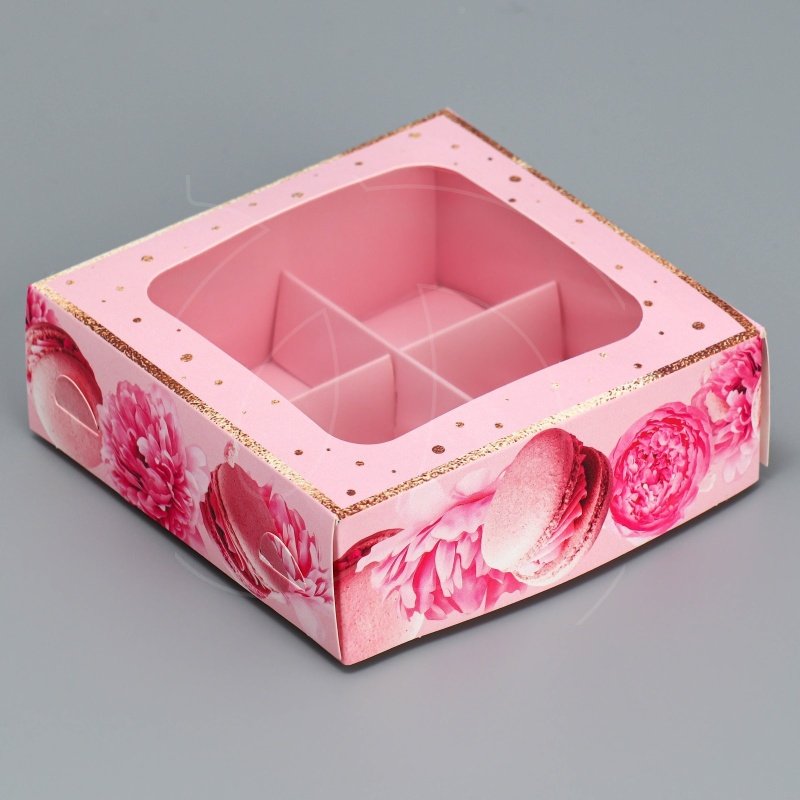 Доставка Коробка на 4 конфеты с окном "Розовое настроение" 10,5х10,5х3,5 см из магазина в вашем городе: