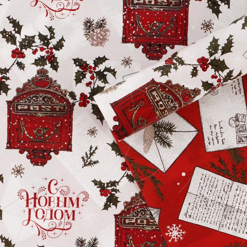 Доставка Бумага упаковочная двухсторонняя глянцевая "Новогодняя почта" 70х100 см из магазина в вашем городе:
