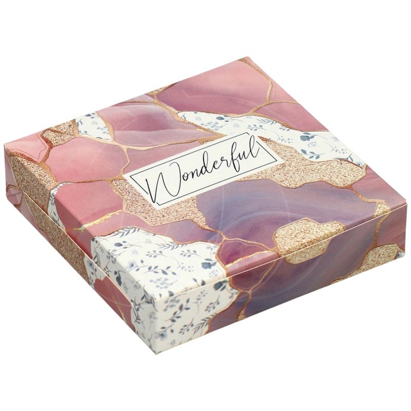 Коробка для сладостей "Мрамор" розово-фиолетовая 14х14х3,5 см