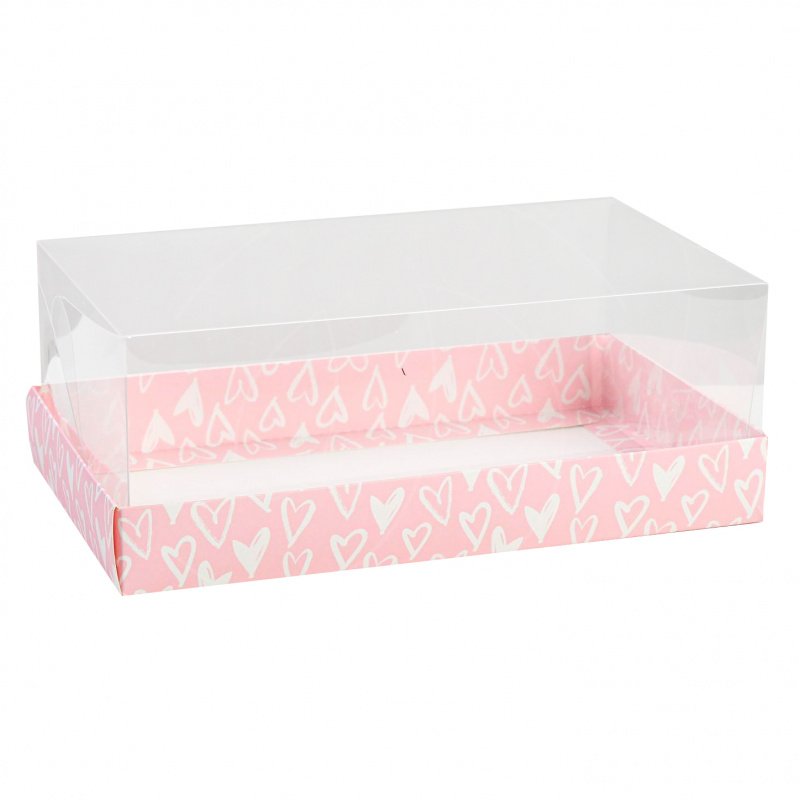 Доставка Коробка для сладостей с прозрачной крышкой "Сердечки" 22х8х13,5 см из магазина в вашем городе: