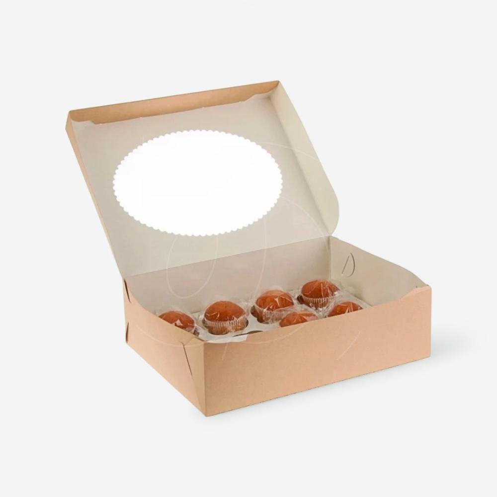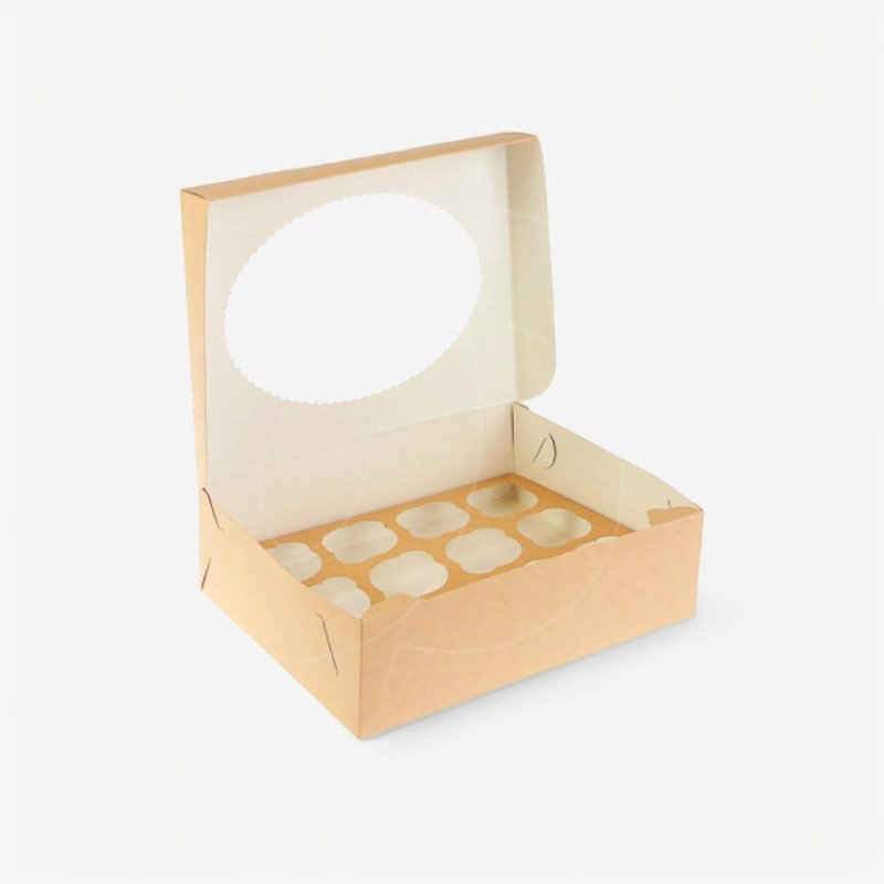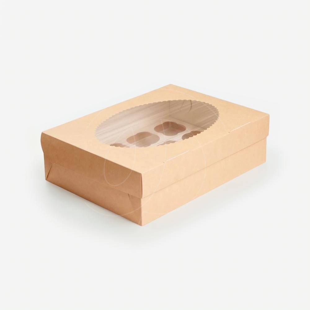 Коробка на 12 капкейков с окном крафт/белая