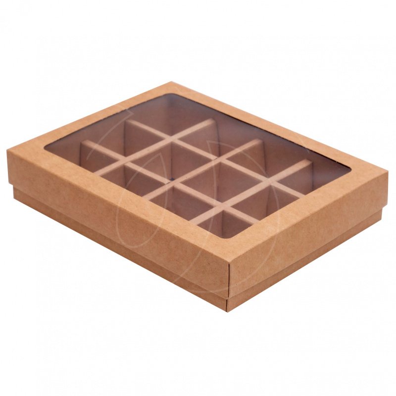 Доставка Коробка на 12 конфет с окном крафт 19х15х3,6 см из магазина в вашем городе: