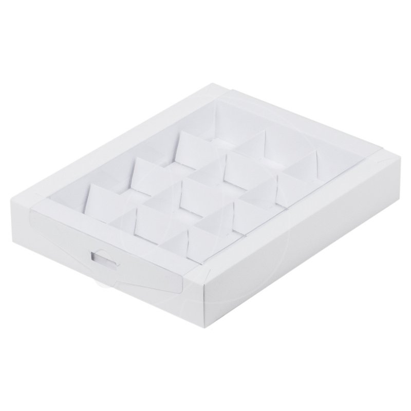 Доставка Коробка на 12 конфет с прозрачной крышкой белая 19х15х3см из магазина в вашем городе:
