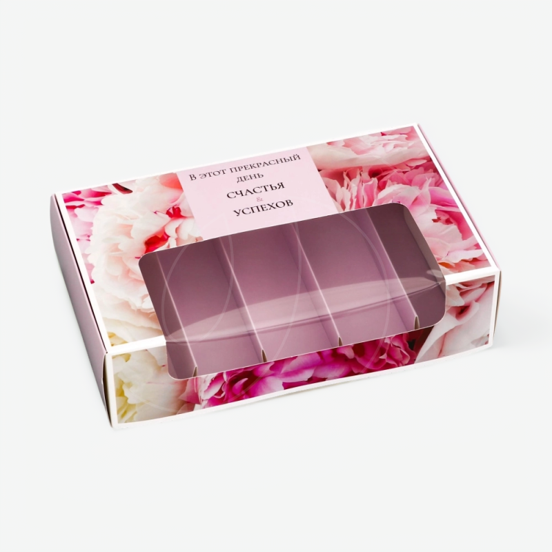 Доставка Коробка на 5 эклеров и эскимо с окном "Счастья и успехов" 25,2х15х6,6 см из магазина в вашем городе: