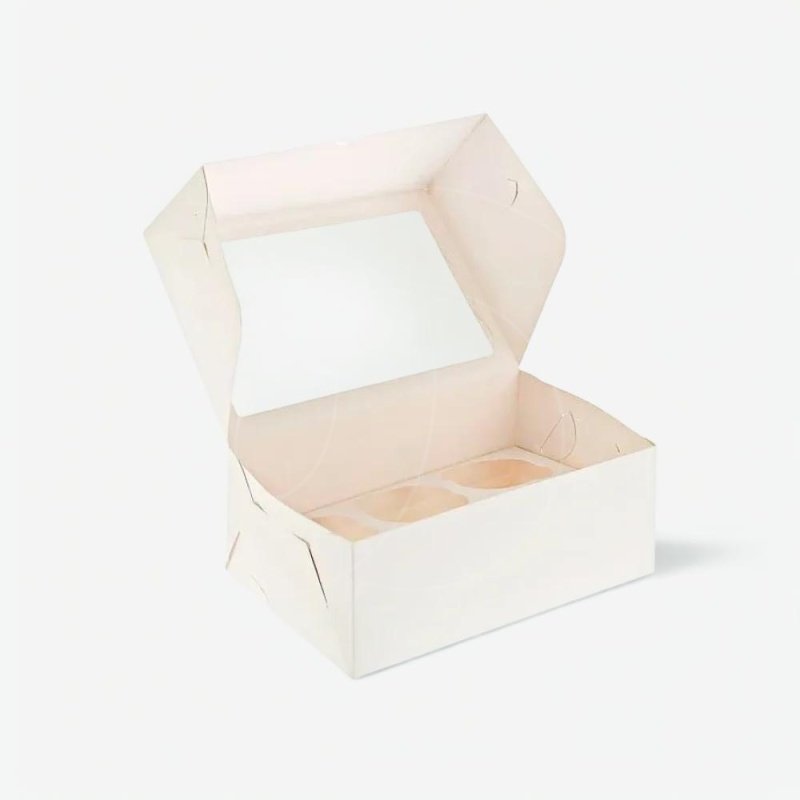 Картонная коробка белого цвета для ваших вкусных капкейков и кексов!